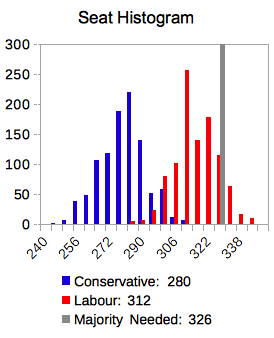As you can see, the most common result puts Labour short of a majority.